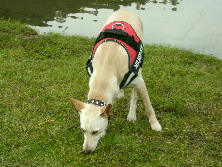 Soeben bin ich mit meinem Rudel vom abendlichen Spaziergang zurück gekommen, und jetzt muss ich mich erst mal stärken. Da heute ein besonderer Tag, so etwas wie mein erster Geburtstag ist (auf den Tag genau wohne ich eine Jahr in Erbach) gab es als Krönung Hähnchenschenkel und später noch den Riesenknochen, den Frauchen vor ein paar Tagen im Wandschrank versteckte (ich hab ihn läääängst gerochen).